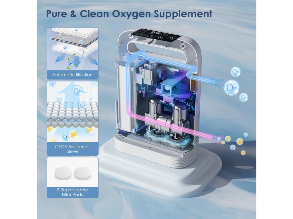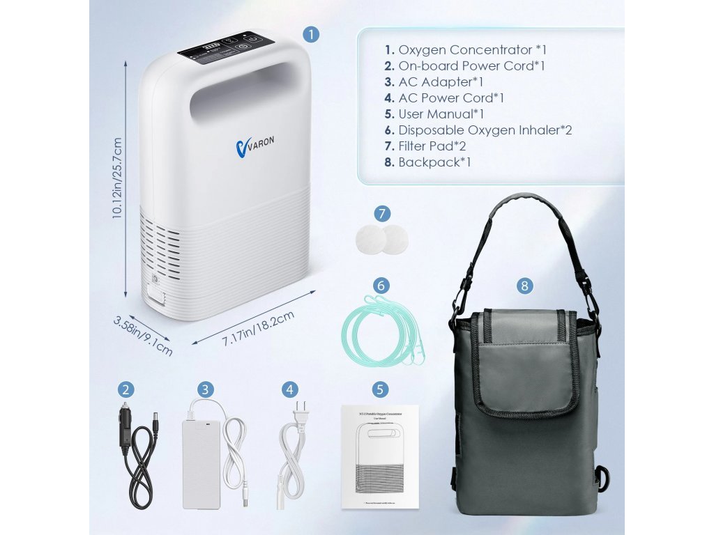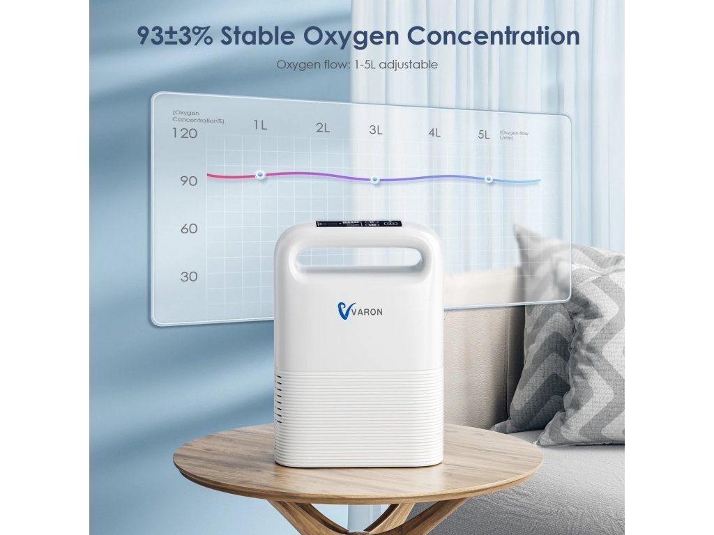 VARON NT02, hordozható oxigén koncentrátor, 93%, 5L, 2.2 Kg, 4 óra