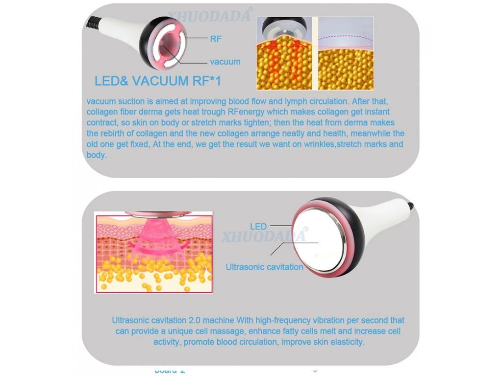 Az RF és Vortex vákuum negatív nyomású technika kombinációjával az erős biohőenergia előállításához nagyfrekvenciás árammal, retikuláris hurkon keresztül. Emiatt növelheti a belső hőmérsékletet, és lebonthatja a mély zsírszövetet a szervezetben, ami a kollagén regenerálódását és rekombinációját idézheti elő, így érheti el a bőr feszesítő hatását.
